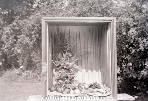 Guilford Fair display of gourds and dried flowers with Fair 1st place ribbon on the left. Probably Grace Dudley’s display 1952 Shelton W. Dudley Sr