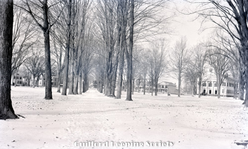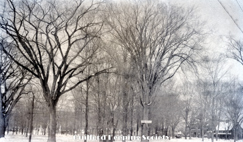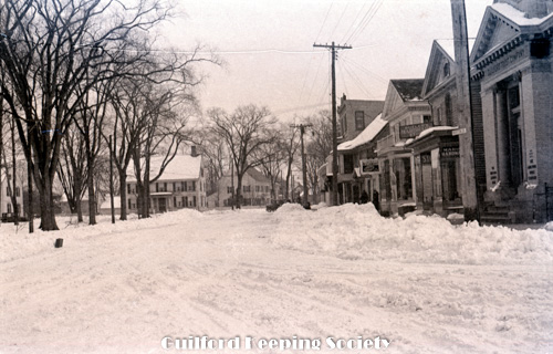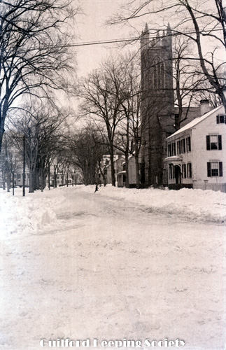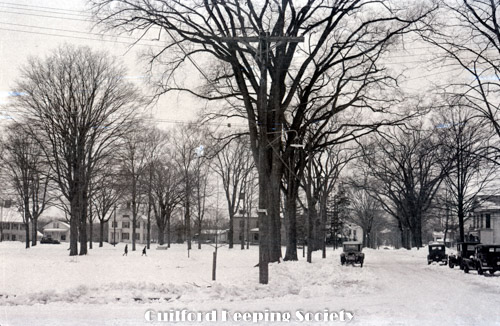 Boston St at the south end of the Green. Taken in a snowstorm. c1935 Albert Hotchkiss