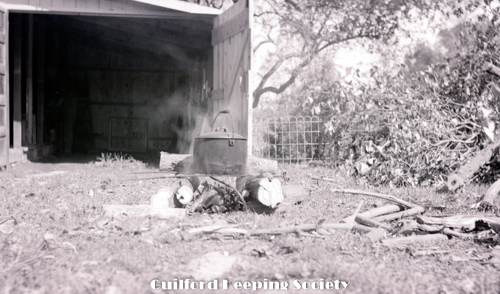 Hurricane damage, cooking over outdoor fire-possibly in backyard of 45 Boston St 45 Boston St Sept