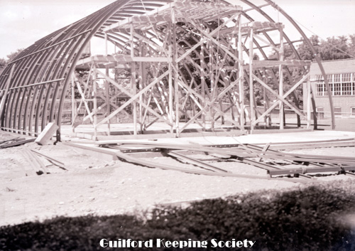 Construction of the Quonset hut on Church Street. The southwest corner of the Church St School at 32 Church St is in the background. 20 Church St c1935 Shelton W. Dudley Sr