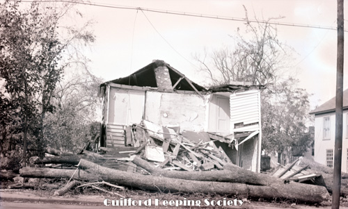 Nathaniel Johnson house being razed. Stood next west of 122 Broad St Torn down in 1906. Copy photo Broad St 1906 Shelton W. Dudley Sr