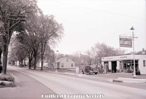 Atlantic Gas and Service Station at the southeast corner of River St and Boston Post Rd Boston Post Rd, corner with River St c1945 Shelton W. Dudley Sr
