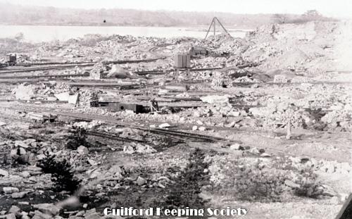 Hughes Brothers & Bang’s quarry, derricks and train tracks in the quarry pit. Copy photo Uncas Point, Sachem’s Head Uncas Point Rd c1910 Shelton W. Dudley Sr