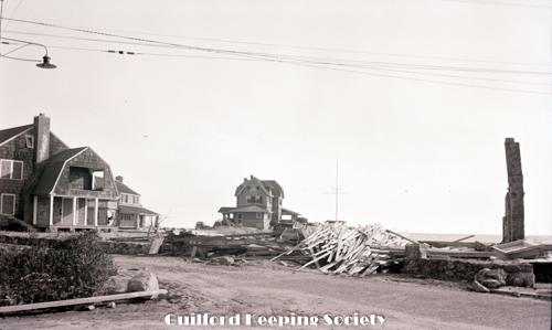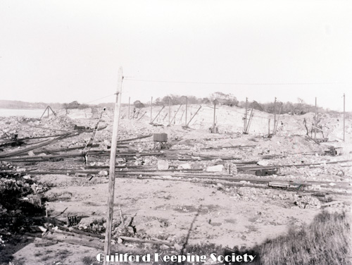 Hurricane damage, Prospect Ave. with Loyal Ledge in the background.Sept. 1938 Albert Hotchkiss