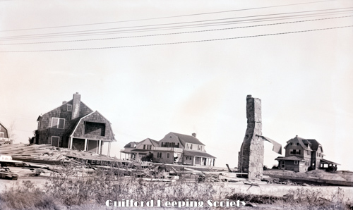 Hurricane damage, 4 houses on a hill, not Guilford Sept