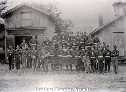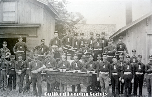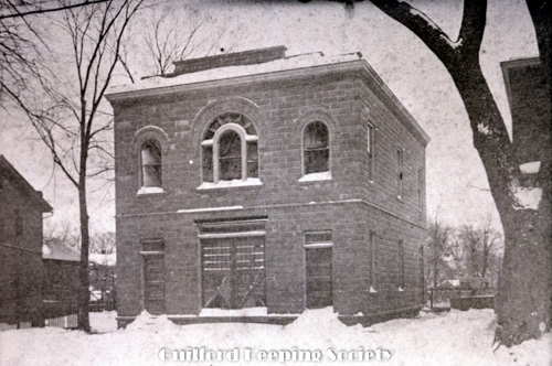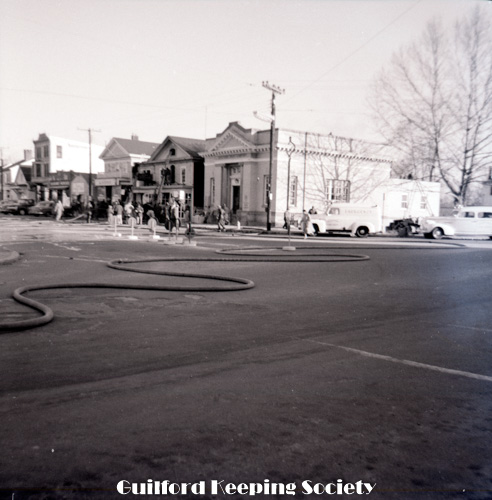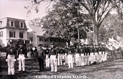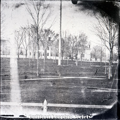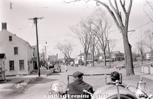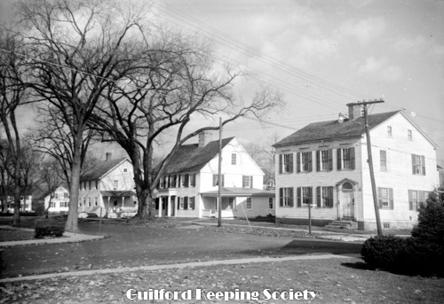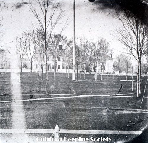 liberty pole looking at the north end of the Green. Left to right Joel Tuttle II house, William Redfield house and W.W. Baldwin store, at 88,96,102 Broad St copy photo Broad St 88-102 1865-1871