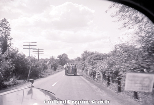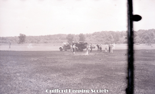 view of the open countryside with houses and barns, possibly the view from Three Mile Course. Jacob’s Hill Three Mile Course c1945 Shelton W. Dudley Sr