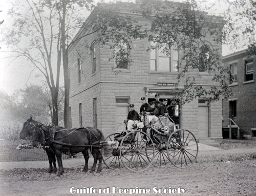Southwest corner of the Green with horse and buggy. Hawley's Bakery. Whitfield and Boston St at southwest corner of Green c1895