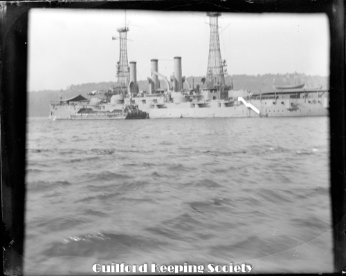 Boston St. and the Green view north from Henry Whitfield House (possibly from roof or attic)