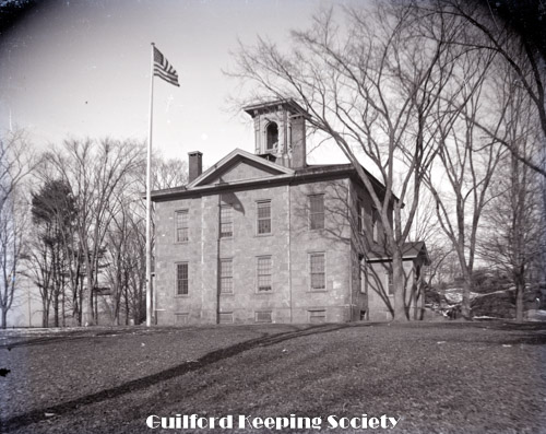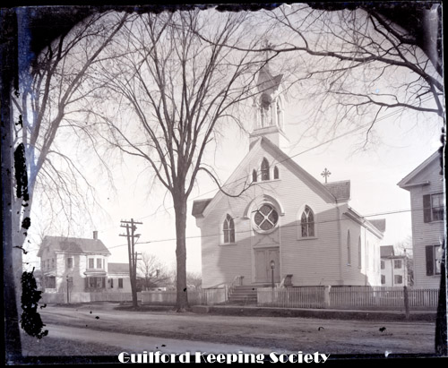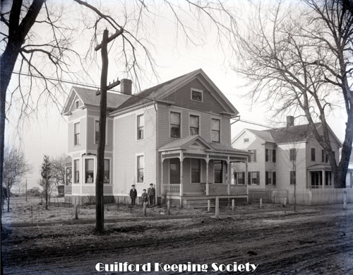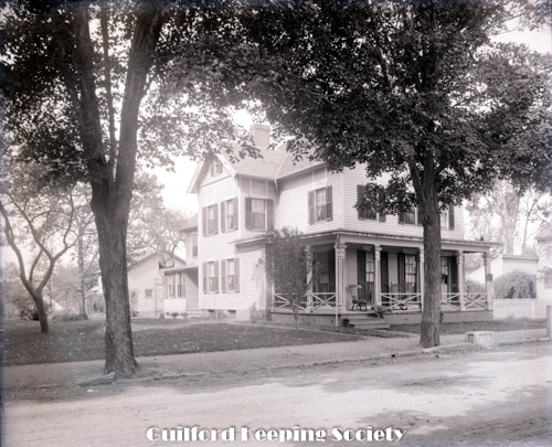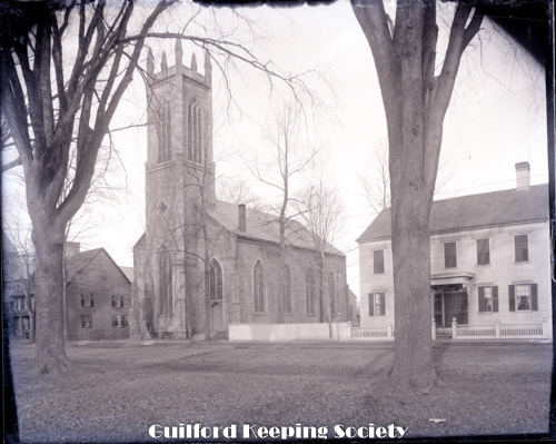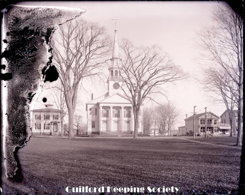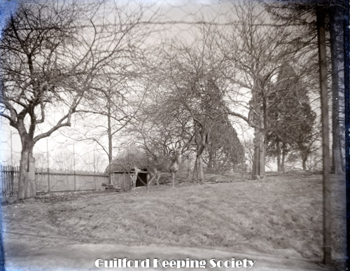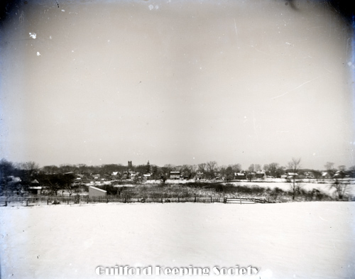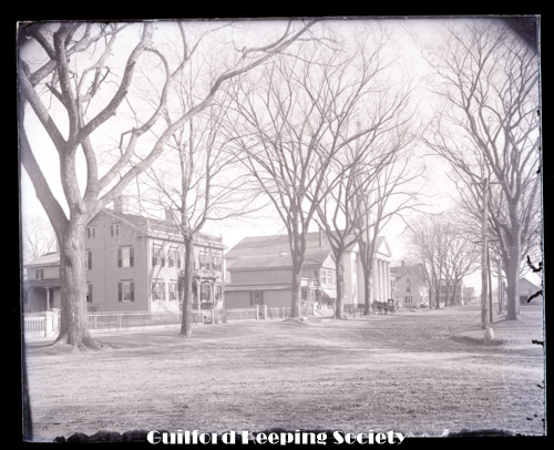 Looking north from the grounds of the Henry Whitfield house 248 Whitfield St. Steeple of Episcopal church and houses east of the Green on Boston St. are visible