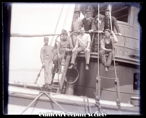 George Davis’s family at Elias Cadwell house in its original location at 1 Boston St. House later moved to 65 Water St.