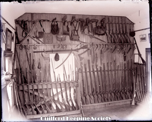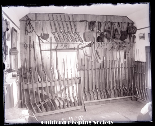 John Phelps’ gun collection close up including canteens and swords in the room in the rear addition.