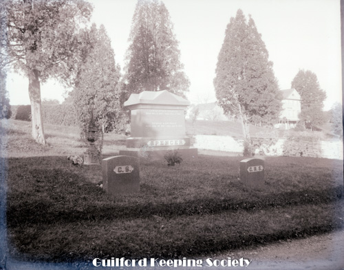 Christopher Spencer and George B. Spencer tombstone in West Side cemetery. house on Three Mile Course in background