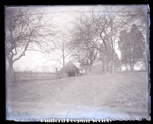 Cranbrook Tower. deer park with deer adjacent to tower. Interior part of property at 29 Broad St.