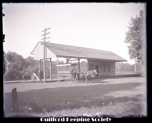 Sachem’s Head railroad station with Hotel bus livery (horsedrawn wagon)