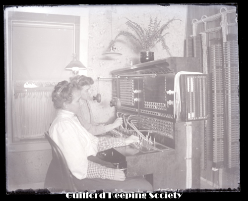 telephone switchboard (with 2 operators) for Guilford exchanges, Minnie Hull Dudley and Mrs. Graves according to Shelton Dudley notes
