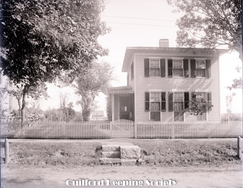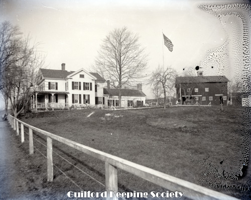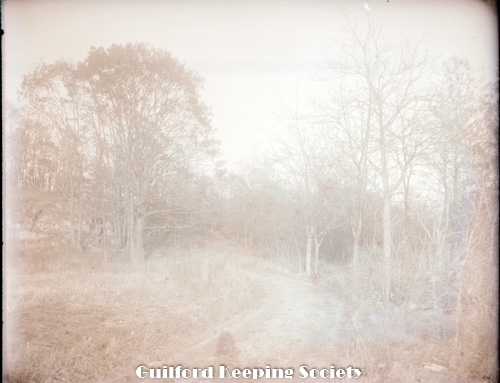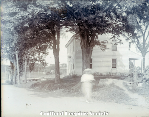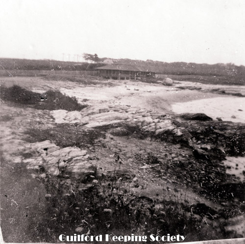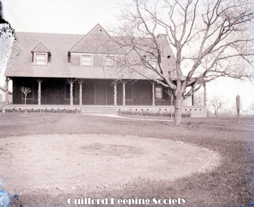 Daniel Brown Leete house, Sachem’s Head. View looking west. Property owned by Albert Stevens (1996) off West Lane east of Vineyard Point. House razed in 1957.