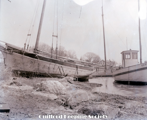 sloop Fred on left and boat Vera on right. Capt. William Roberts’ boats. probably Roberts’ house in background