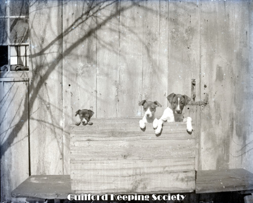 three very cute puppy dogs, Eva B. Leete’s antique shop