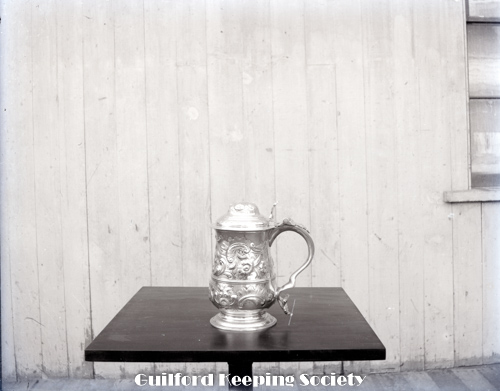 stein (or tankard) on stand. elaborate. possibly silver. Eva B. Leete’s antiques 148 North Fair St or #98 Fair St, Edward Leete’s workshops