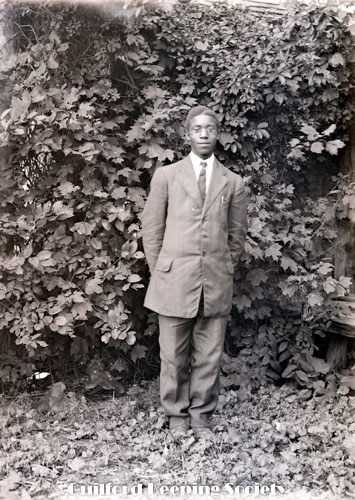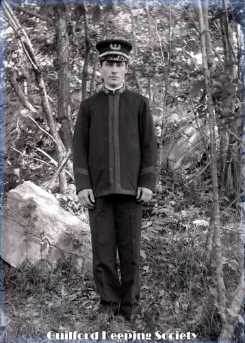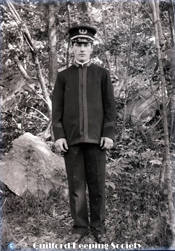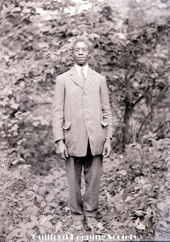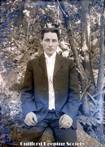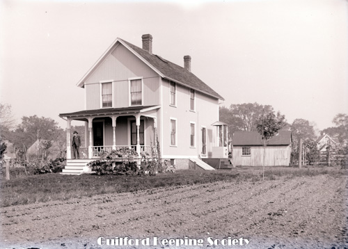 Joseph Wyatte house. Probably Joseph Wyatte standing on front porch. House acquired by Henry L. Spencer in 1917
