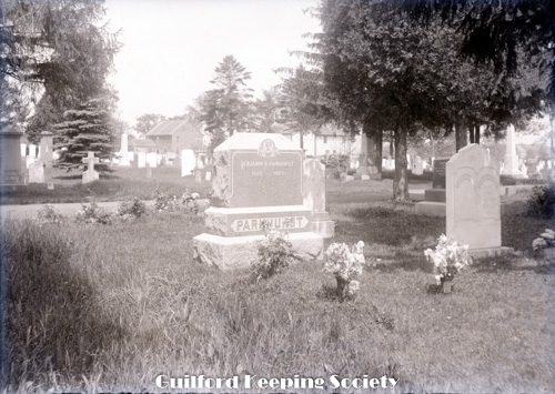 Benjamin B. Parkhurst’s gravestone in Alderbrook Cemetery looking at the back of 321 Boston St. (the Black house). Date on gravestone is 1906.